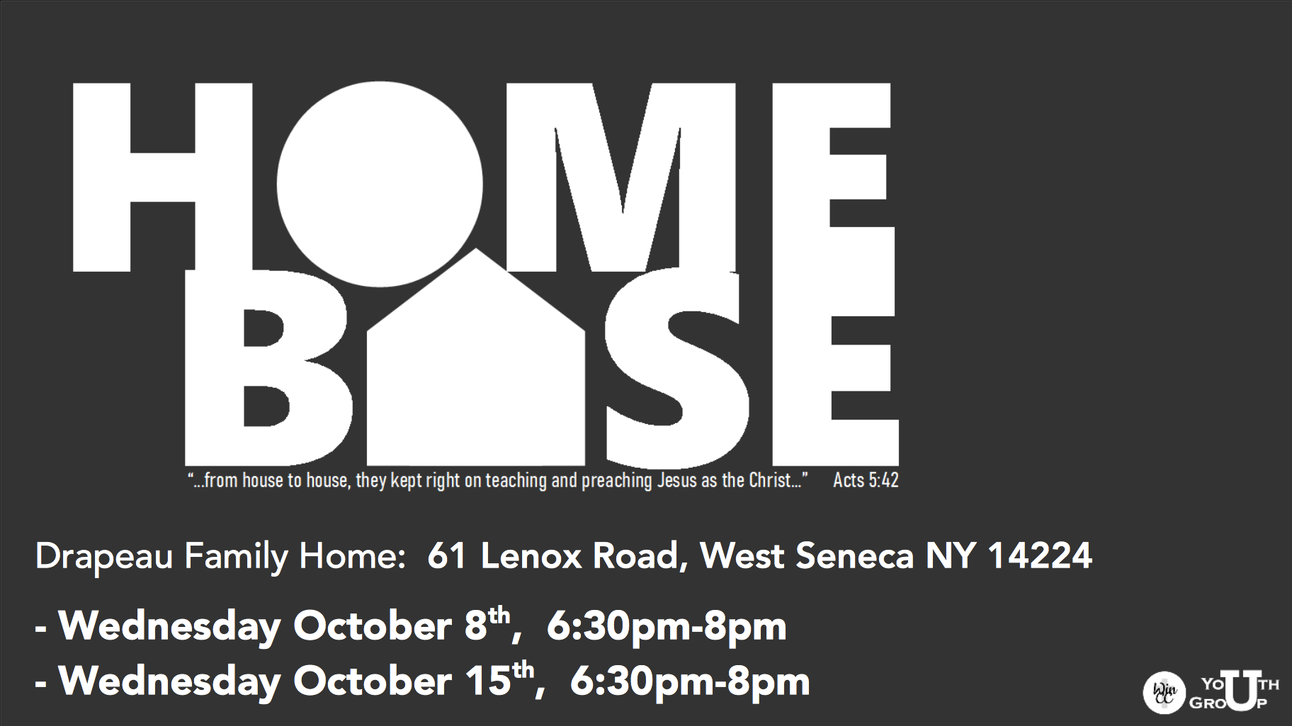 Invite your friends and join us as we get real and have fun! YoUth GroUp is a safe and welcoming space for teens in high school. Ask tough questions; get real answers; know and hear the truth about God from a fresh perspective. (Oh, and some great outings and large-scale outreaches, too!) Stay up-to-date through the WinCC Facebook page for any special events or cancellations. See you on scheduled Wednesdays from 6:30pm-8pm at living rooms in homes across Western New York as part of HOME BASE–schedule listed below–from October through May (off during school breaks), as well as during special events and outings updated here!